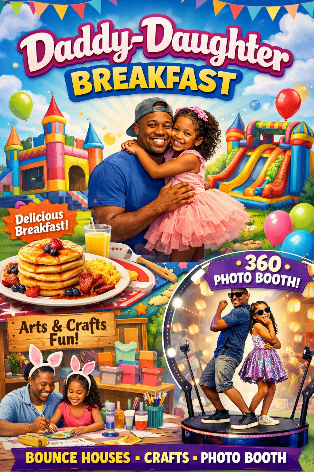 We’re excited to welcome families back for our second annual Daddy–Daughter Breakfast! Last year featured breakfast, arts & crafts, and a 360 photo booth—and this year we’re expanding the fun with bounce houses added to the experience. Enjoy a morning filled with great food, creative activities, interactive photo moments, and meaningful bonding time designed to create lasting memories for dads and daughters alike. 💕
